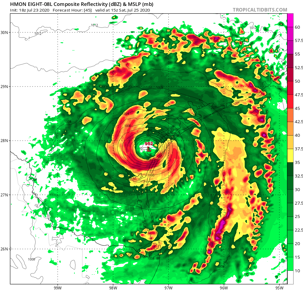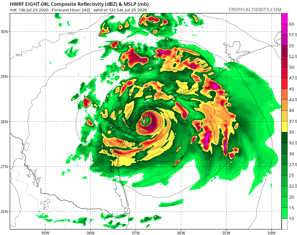 don wrote: Thu Jul 23, 2020 6:30 pm 18z HMON and HWRF are in and both show a hurricane hitting the middle Texas coast but also show a much more expansive storm that isn't as compact a previous runs. And has a lot more moisture on the dirty side fwiw.