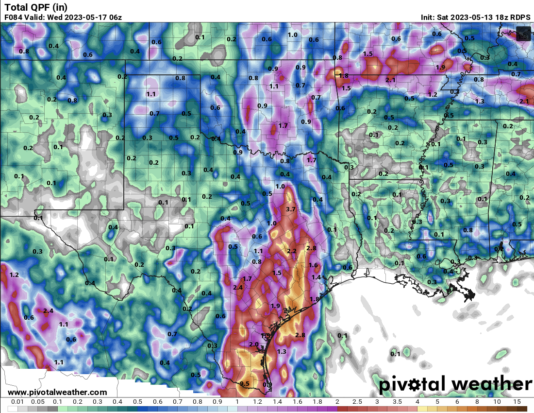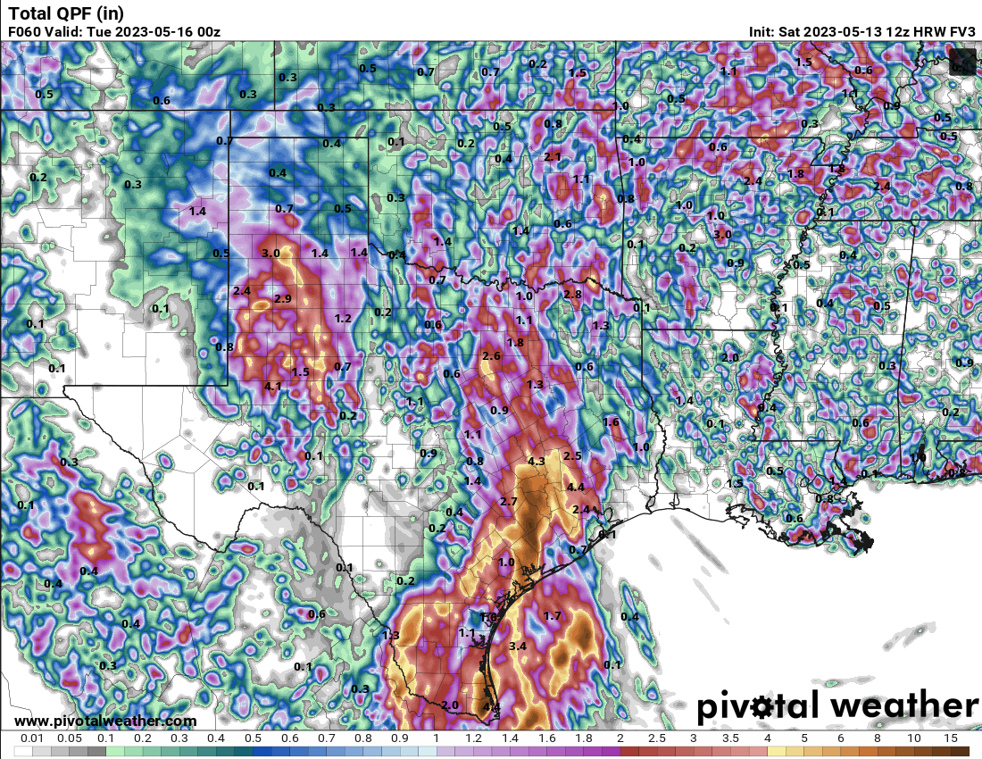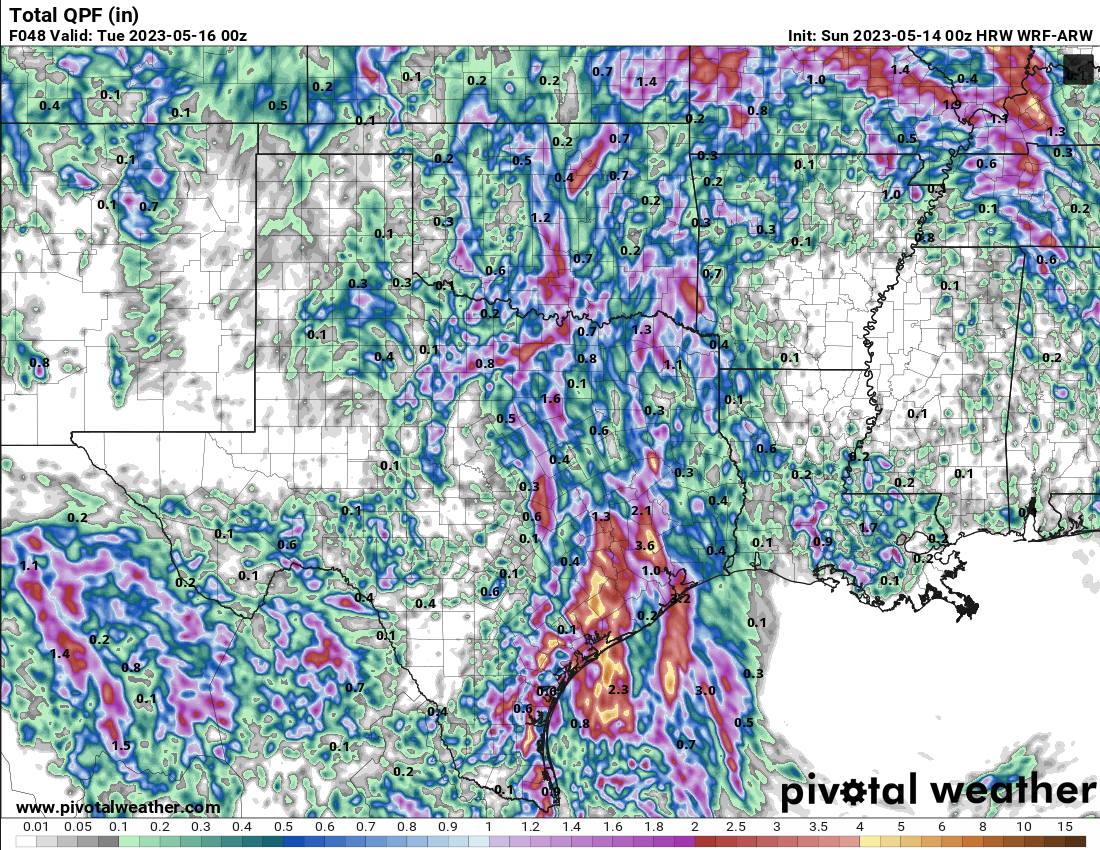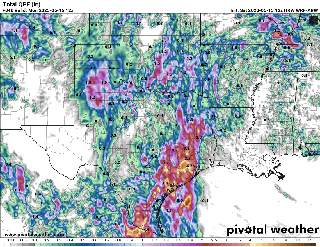 869MB wrote: Sat May 13, 2023 11:47 pm What jumps out at me with some of the latest mesoscale models forecasted 48hr QPF totals is the low accumulations over Central TX, South Central TX, and The TX Big Bend areas…The same areas that were forecasted to receive some fairly healthy rainfall amounts earlier in the week and just a day or two ago.