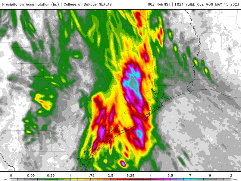The FV3 model has more than 14 inches in portions of Wharton and Colorado counties.(FWIW) It will be interesting to see what the 0Z runs show.