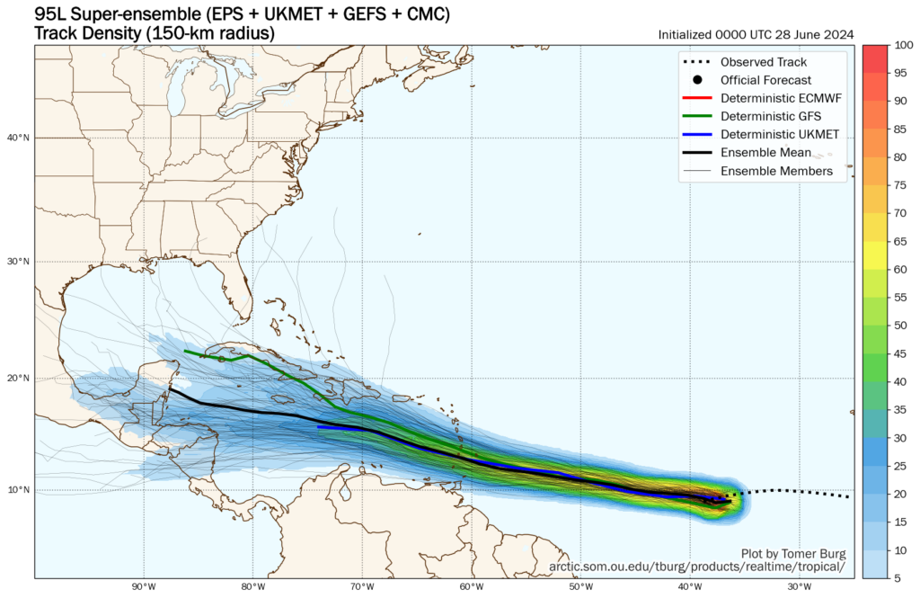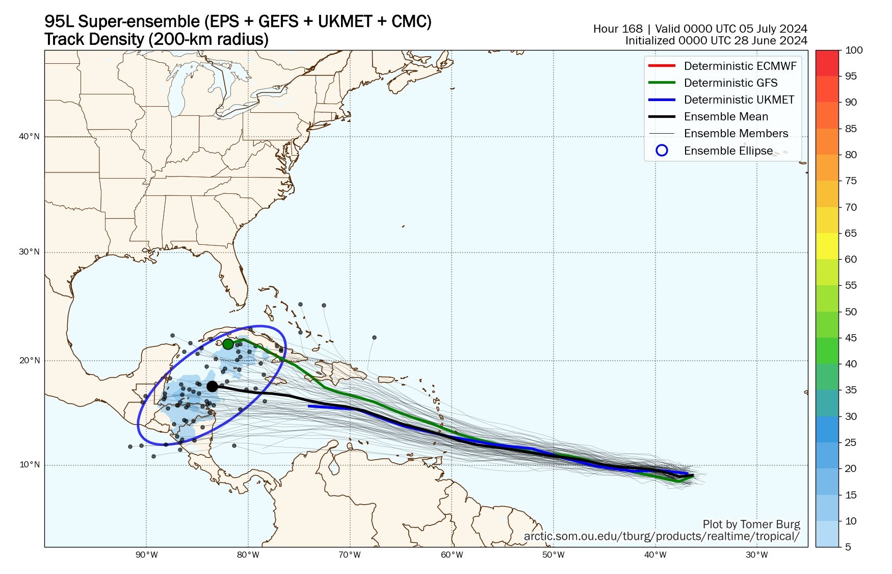 Travis Herzog just said the stronger this becomes in the caribbean, the more likely it will track NW into the gulf, NHC has it peaking at a strong cat 2 and even still a strong 1 nearing jamaica, possibly could get up to a cat 3 like what some guidance suggests, a lot to watch here, but as you mentioned CPV17, 95L could possibly influence 95’s track, we shall see