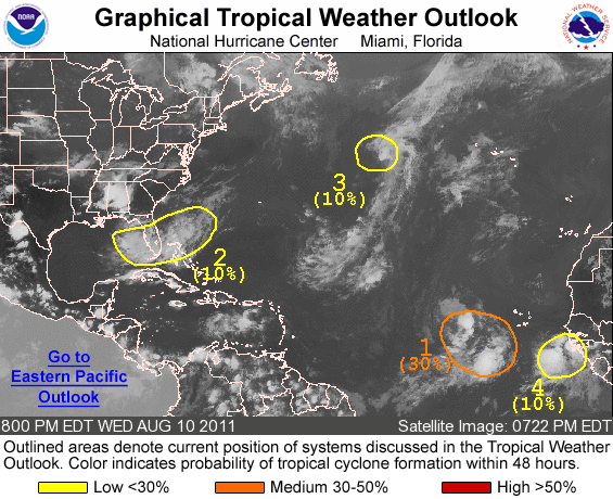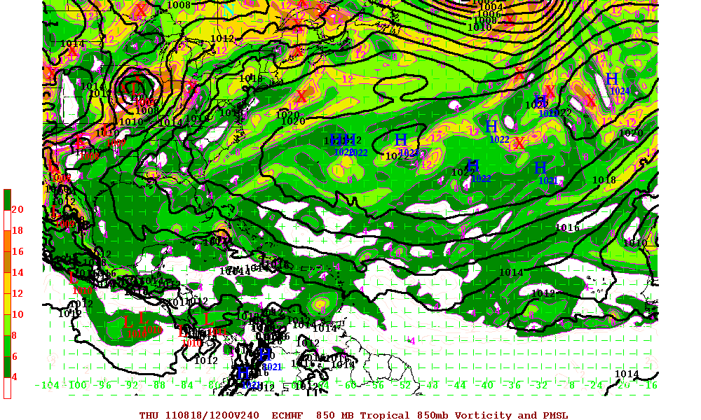 240 = weak vortisity near the S Bahamas and another disturbance just W of the Windwards...
