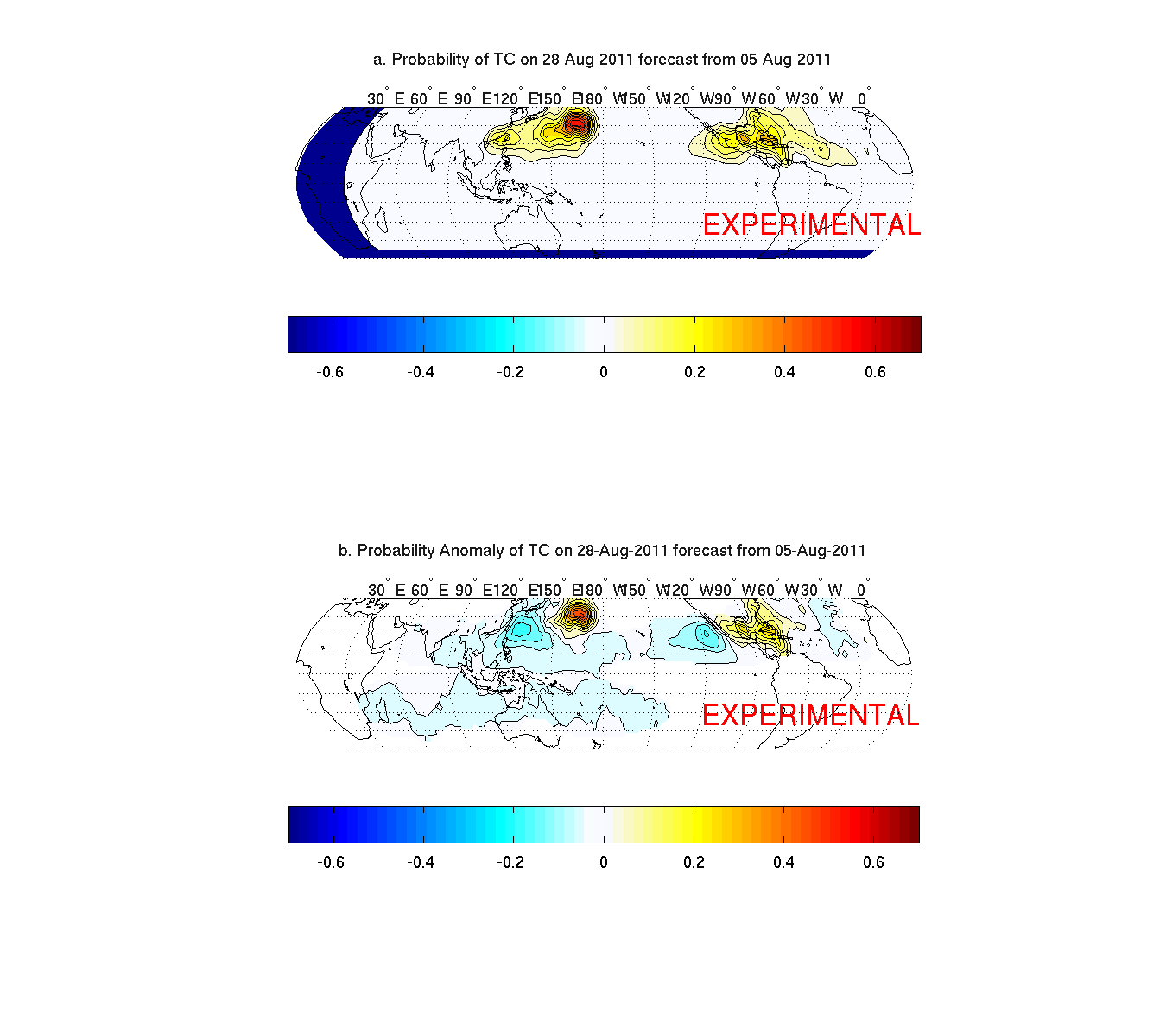 What raises an eyebrow is the TC genesis probabilities suggested by Roundy as we head toward the 20th or so of August and on into the beginning of September. The Caribbean and Gulf could become areas we will need to watch closely. It is getting that time of year folks and we have seen the seasonal forecasts suggesting an active season. I know we've grown tired of the long stretch of boring hot weather, but things may be moving toward a change. We will see...