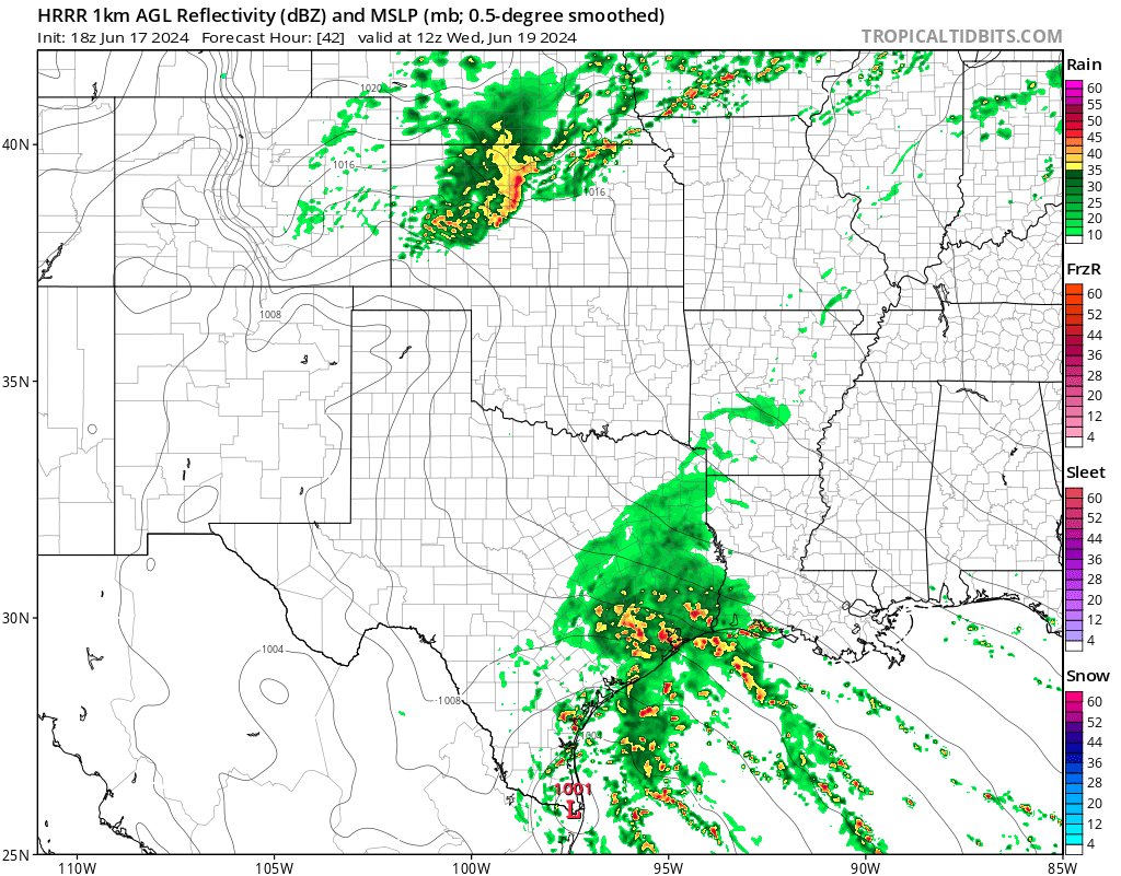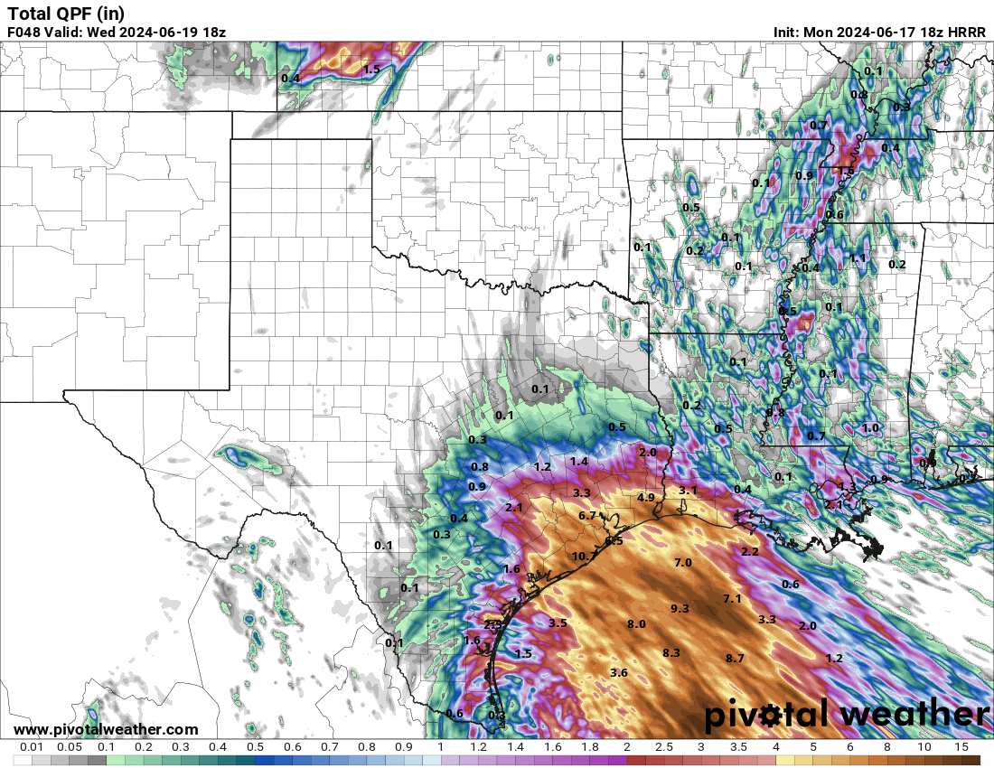 Looks like between Karnes City and Victoria the GFS paints the highest totals and coming in around matagorda to bay city.Stratton20 wrote: ↑Mon Jun 17, 2024 1:14 pm GFS has a max bullseye of 25 inches, we really gotta watch and see where these feeder bands set up