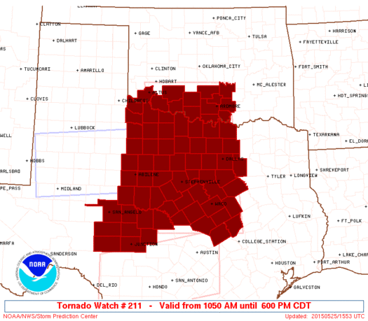 TORNADO WATCH 211 IS IN EFFECT UNTIL 600 PM CDT FOR THE