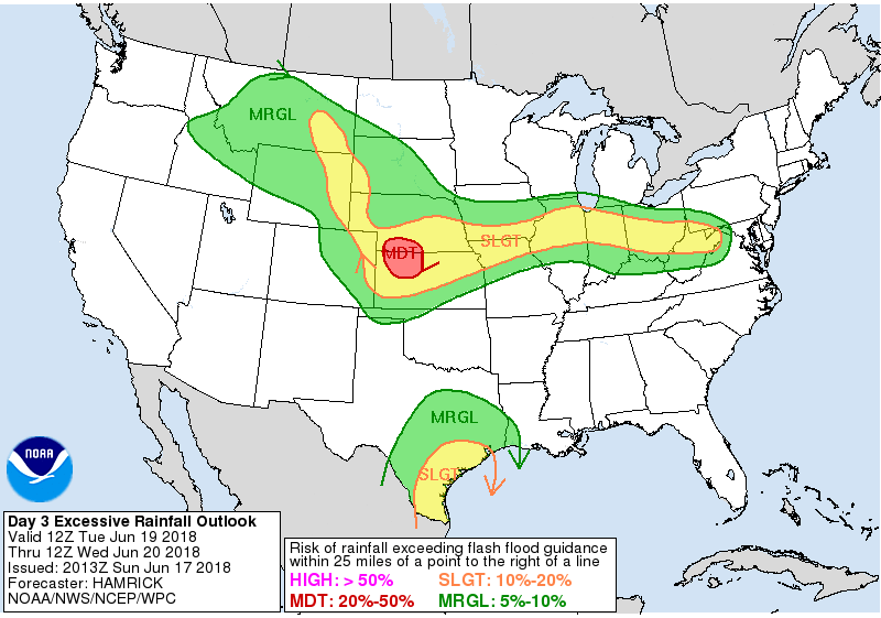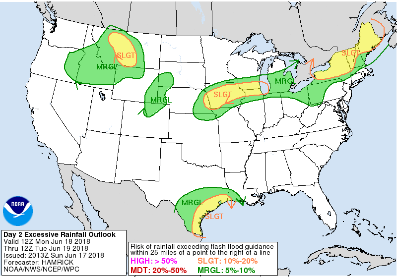 The Excessive Rainfall Outlooks have us in a Slight Risk for today with Moderate Risks for Tuesday and Wednesday.