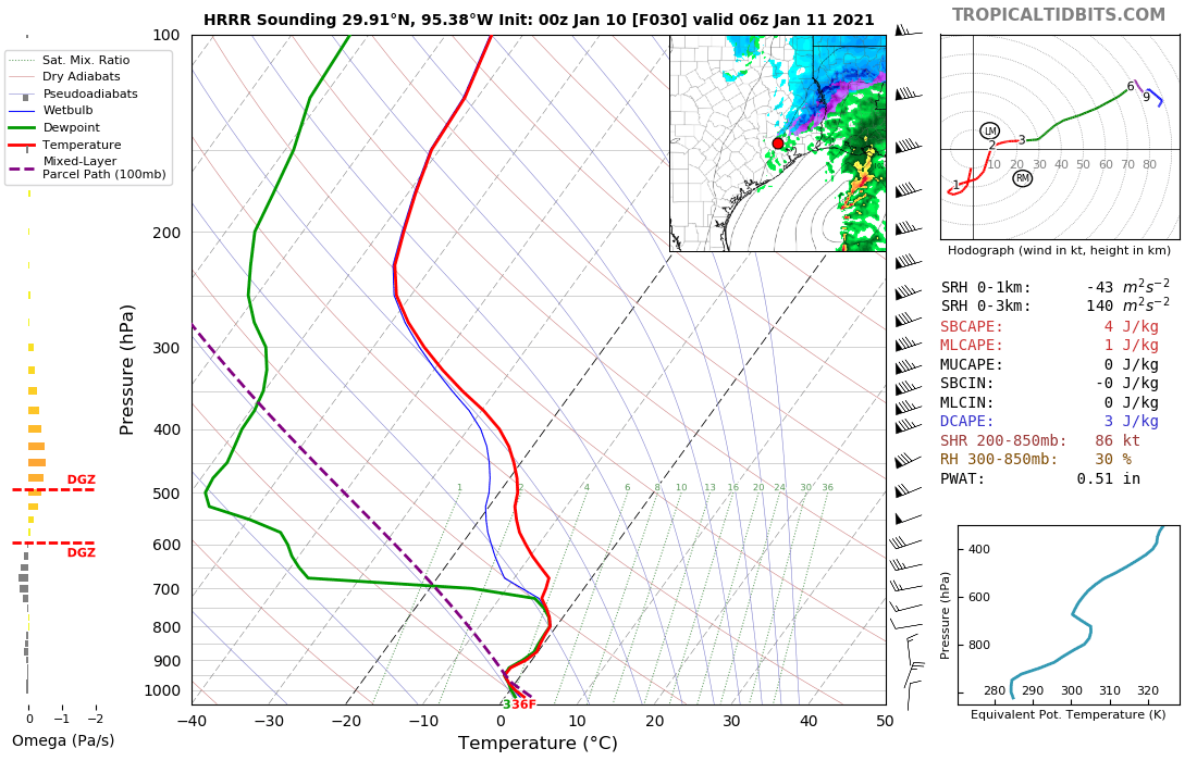 HRRR 00Z run shows a more favorable environment over Harris County towards the end of the event. As with most events here, it is likely going to be a battle between precipitation ending and the upper-environment cooling enough.