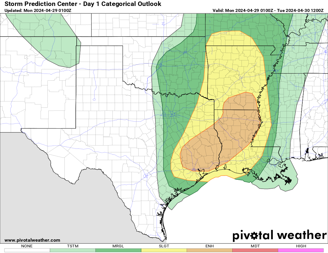 locations we saw overnight. Nothing screams anywhere as extreme as