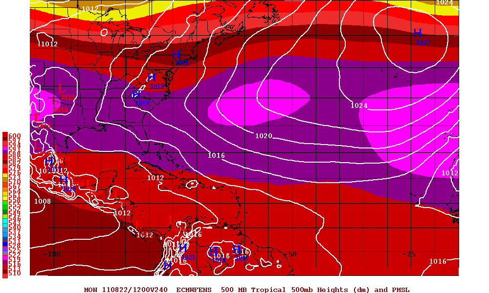 The 00Z Euro Ensembles continue to suggest lowering pressures across the Caribbean and Gulf as we head toward the end of August...