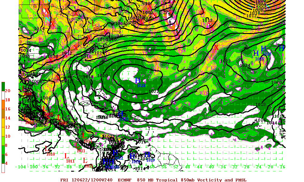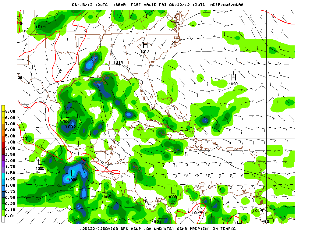 The GFS and Euro are suggesting a broad area of disturbed weather in the Bay of Campeche in the 8-10 day time frame. Past experience suggest with monsoonal trough type systems, these are are slow developing storms...we will see...