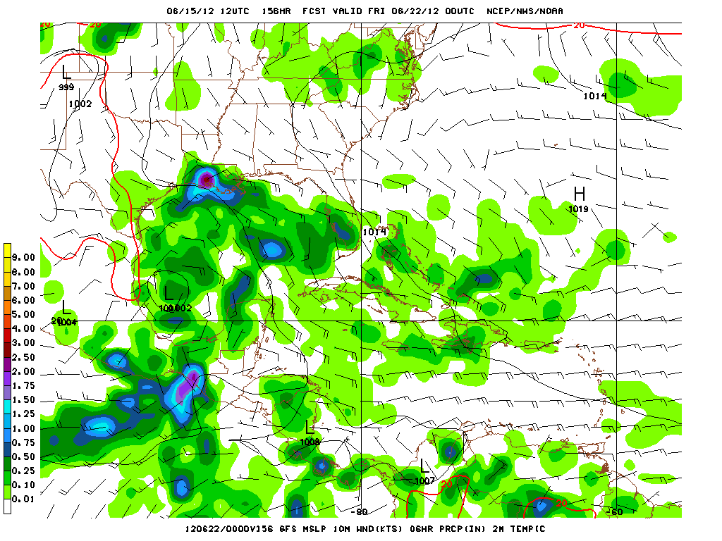 The Euro/Canadian and UKMet are suggesting a broad surface low will develop in the medium to longer range as well. The Euro suggests the upper ridge will build back E over the area of disturbed weather while the Canadian is hinting a more closed surface low heading toward the Louisiana Coast. The UKMet develops a broad low in the Bay of Campeche. The GFS looks to bring that low further N into the Corpus Area. With that increase in guidance output suggesting some form of tropical mischief developing, we'll need to closely monitor future guidance as we are now beginning to get into the range that gives a bit more confidence that something may in fact develop.