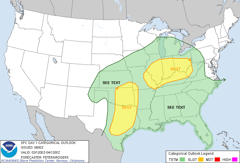 ...THERE IS A SLGT RISK OF SVR TSTMS OVER PARTS OF THE SRN