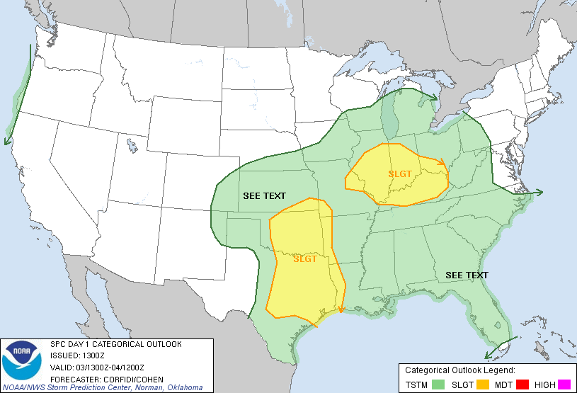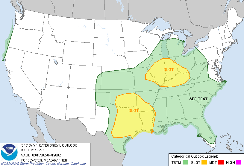 ...THERE IS A SLGT RISK OF SVR TSTMS OVER PARTS OF THE MID MS AND