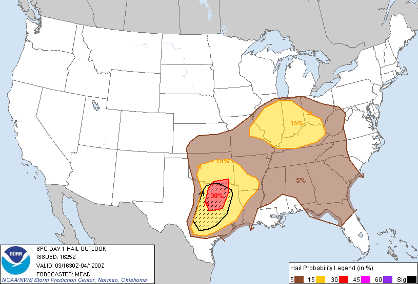 Feel the best threat for strong to severe thunderstorms today will be along and NW of a line from Columbus to Conroe to Livingston where capping will be weakest and approaching storms from central TX have the best shot at reaching before weakening. With that said, if activity becomes well organized over central TX, the threat will need to be expanded across much of the region. Strong instability coupled with good shear will support vigorous updrafts with large hail being the main severe threats…a few extreme hail reports will be possible. Damaging winds to 60mph will also be possible with tornadoes the lower end threat today…but not non-existent.