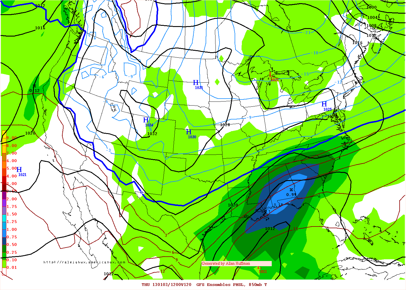 The GEFS (GFS Ensemble Mean) continue to trend toward what the Euro and GGEM have suggested with a deep trough developing S of Arizona in Northern Mexico that slowly translates E during the Wednesday/Thursday time frame. The GEFS means also suggest fairly significant over running as a waves of low pressure ride along the quasi stationary Canadian frontal boundary off shore and several upper air disturbances rotate beneath the trough to our W and plentiful sub tropical moisture available as well.