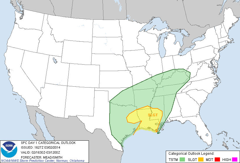 ...THERE IS A SLGT RISK OF SVR TSTMS THIS AFTERNOON THROUGH TONIGHT