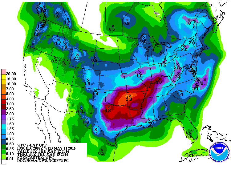 Pattern remains unsettled into next week with general troughing out west and disturbances moving across the region producing complexes of thunderstorms. Gulf of Mexico seems fairly wide open through the entire period supplying plentiful moisture. There appears little change in this overall pattern into late May and TX will remain under the threat for both severe weather and flooding rainfall likely late into this month.