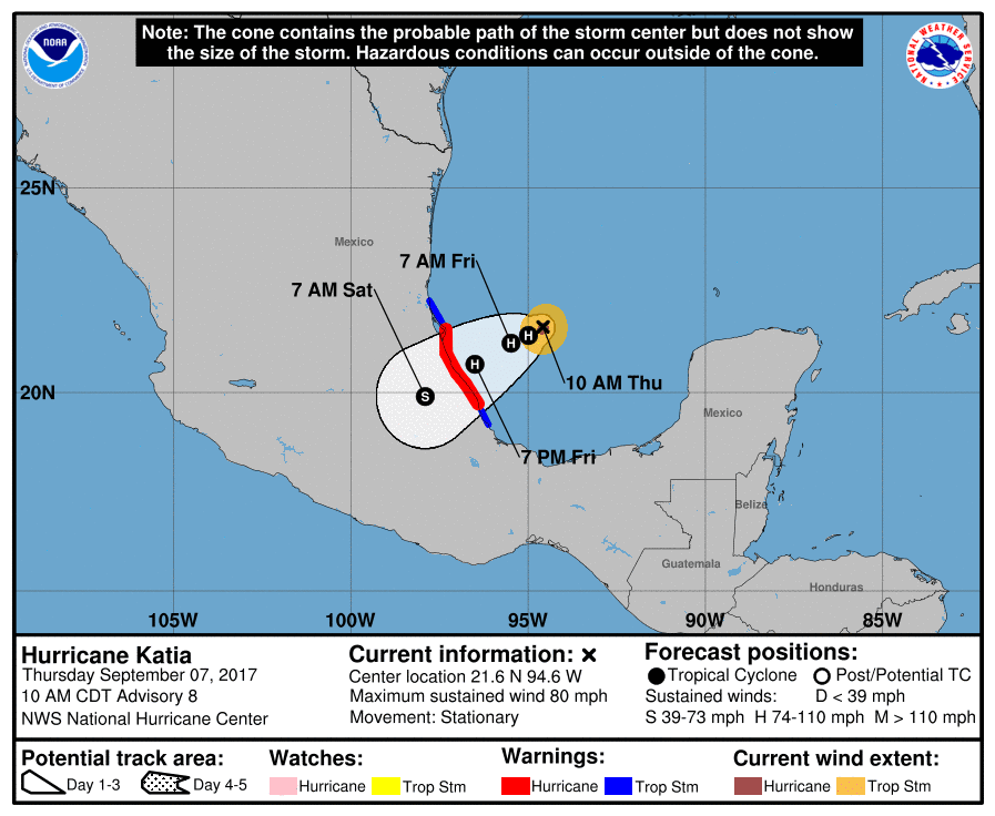 Katia forecast to become a category 2 hurricane and landfall in MX