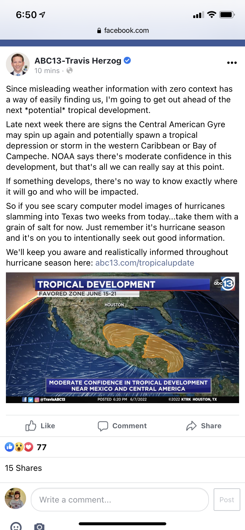We might not see anything if the ridge becomes semi-permanent over Texas this summer. However, I am not counting on that and it only takes one slight shift for something to threaten us.