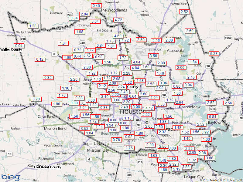 I have compared the rainfall cross Harris County for July 2011 and July 2012 and the results are very impressive (showing how dry 2011 was and how wet 2012 has been).