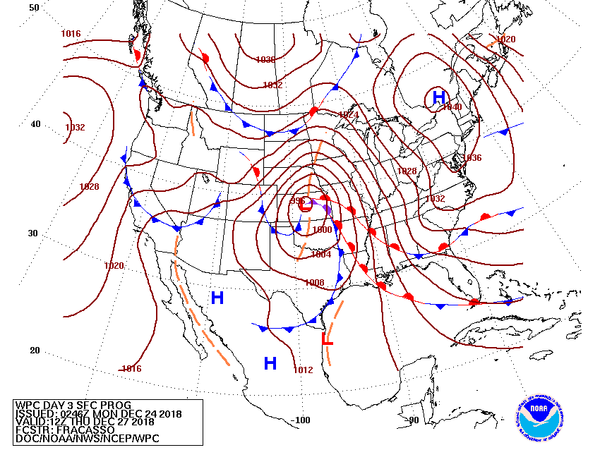 Concern growing of a potentially wet and stormy Wednesday/Thursday following Christmas Day as a deep Western trough develops and a series of storm systems continue to dig S and E into next weekend creating a myriad of weather worries across much of the Nation. Across our Region heavy rainfall and possibly strong to severe thunderstorms are on the table. A Major Winter Storm looks to dump heavy snow across the Central Plains into the Upper Mid West. Yet another very strong storm system looks likely next weekend continuing a rather unsettled weather pattern to end 2018.