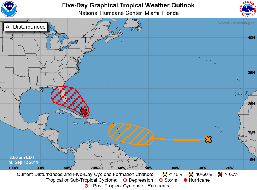 Tropical disturbance over the Bahamas now has an 80% chance of development over the next 5 days.