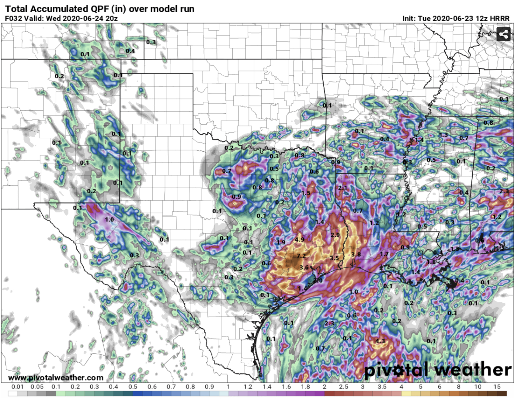 Some pretty substantial totals so far in the 12Z HRRR through about 30 hours. 11+” in western Harris County.