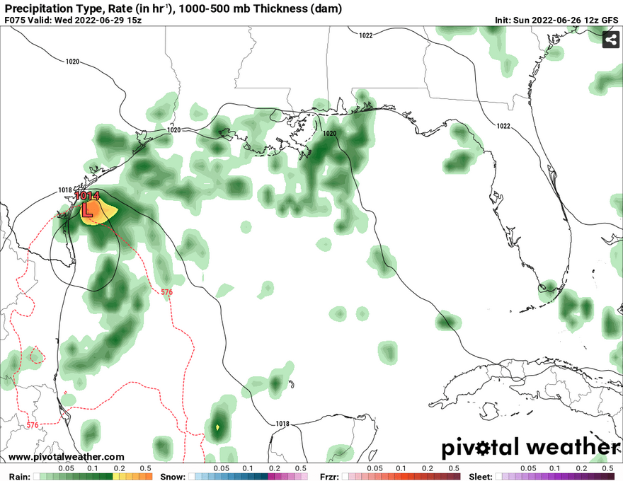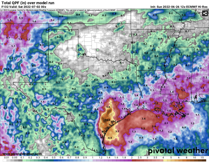 don wrote: Sun Jun 26, 2022 1:52 pm Even with the Euro not showing development, its painting some hefty rainfall totals with the tropical low.