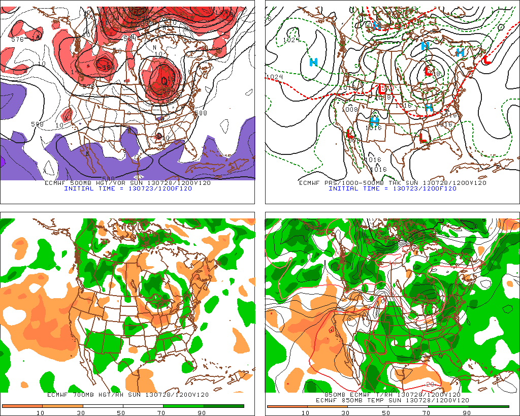 The 12Z Euro remains steadfast insisting that a frontal boundary will drop SE with a short wave/upper air disturbance increasing rain chances on Sunday. We will see.