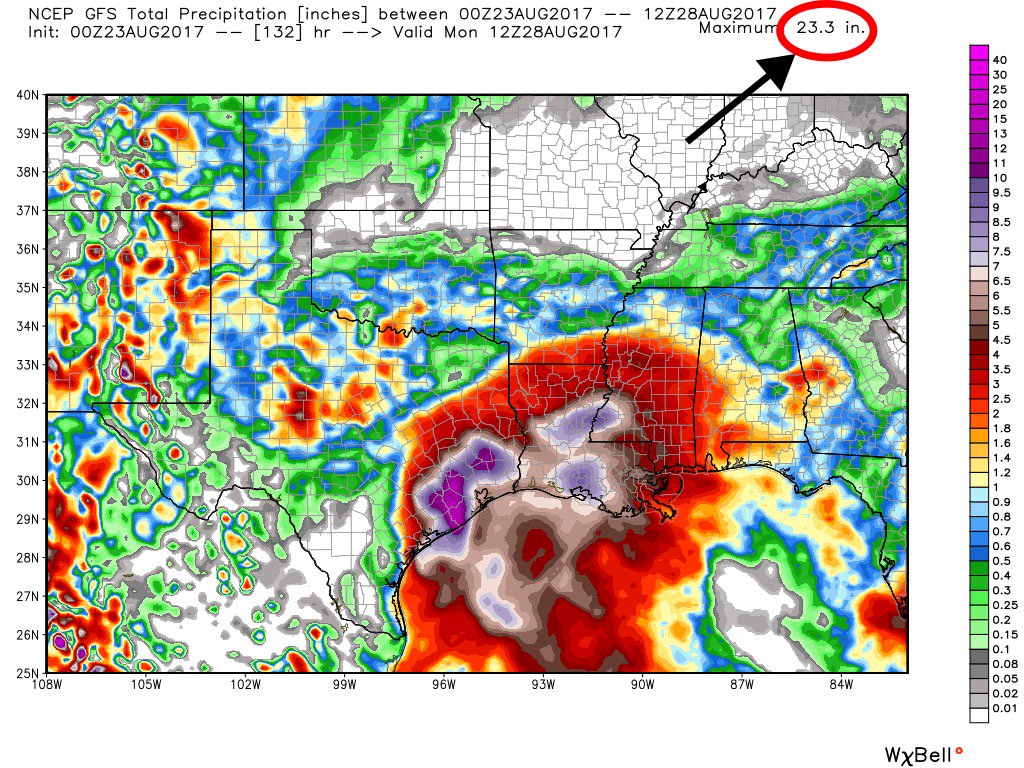 From James Spann via Twitter suggests much higher rainfall amounts across SE Texas from that GFS solution.