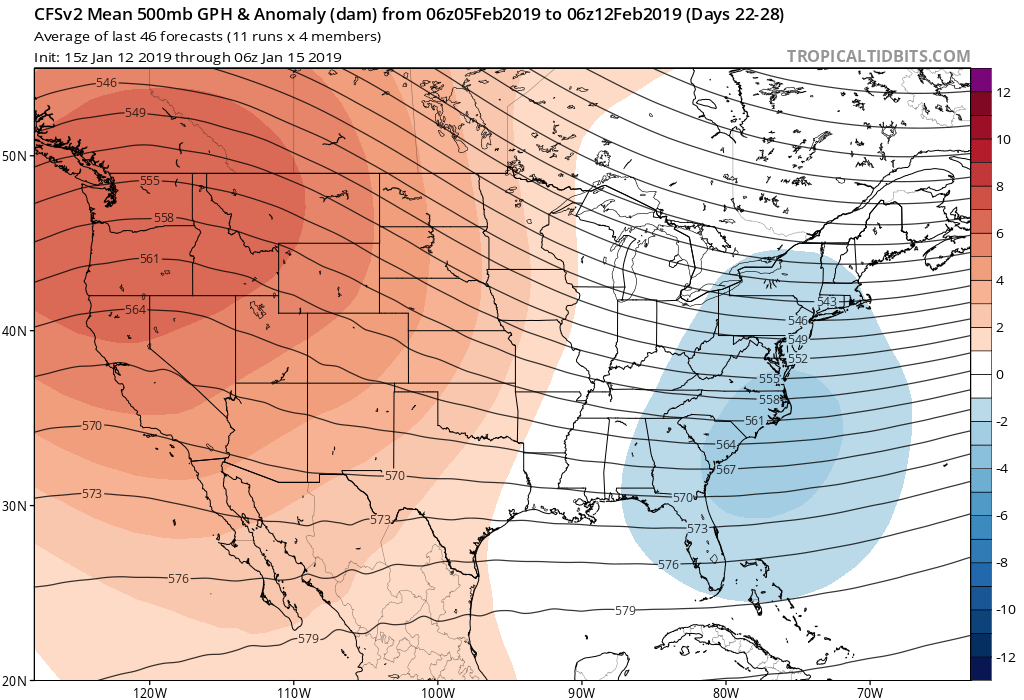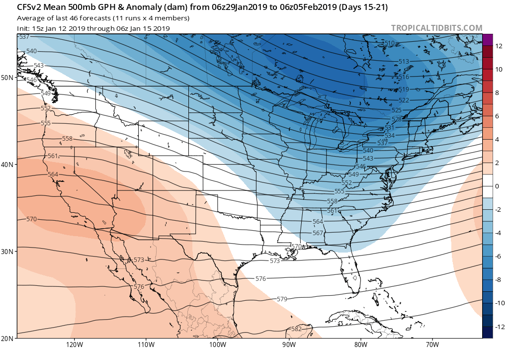 And you may prove to be 100% right! My thought is this weekend is the start of a step down. Maybe it does not start as accute but nonetheless it starts. I still believe the Artic air is underdone and yes the temps may rebound but will again take a step down next week and they may rebound but lesser in the mean and then will step done again. I maybe dead wrong but I have stuck with the stratospheric warm event for a month now along with the big pattern change...I double downsnowman65 wrote: ↑Tue Jan 15, 2019 7:05 pm our local met says nothing to fear with the front this weekend, and I trust him. just as I suspected...and have been saying....we aren't getting anything worth writing home about this year....barely below freezing for a few hours is nothing special. you keep model watching more than 4 days out, you will keep getting disappointed.