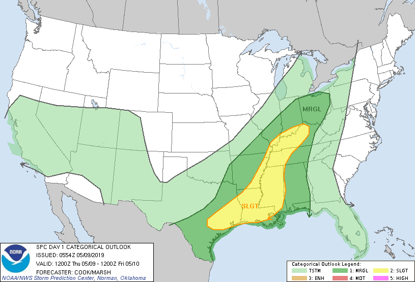 Prediction Center (SPC) is carrying a slight risk for severe storms