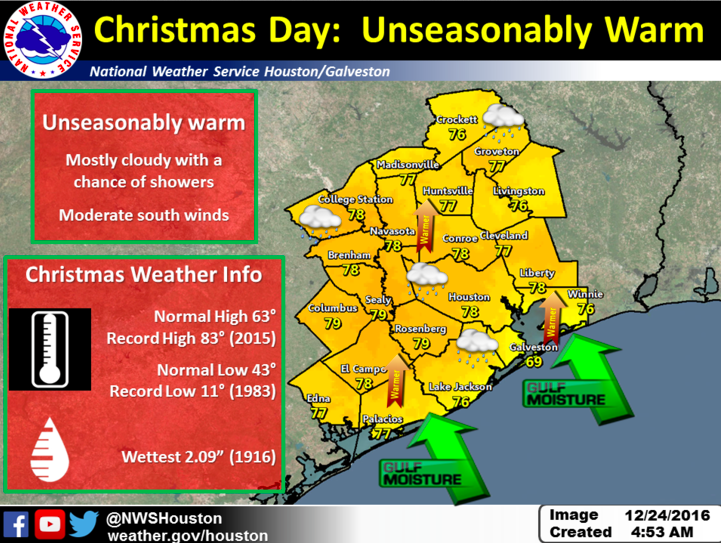 Christmas is suppose to be cold.Portastorm wrote:Yesterday was the warmest Christmas Day in Austin since 1964. We topped out at 80 degrees. This morning we tied a record from last year for warmest minimum temp at Camp Mabry (KATT) at 70 degrees. I'm getting tired of these WARM weather benchmarks.