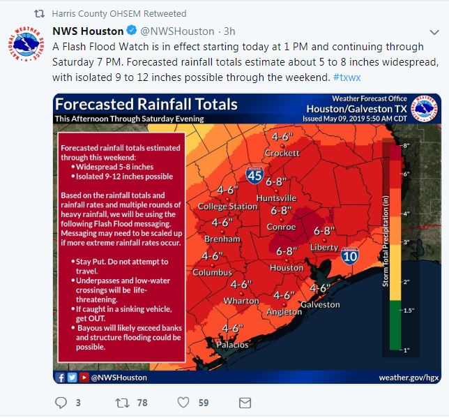 I would watch out if you live about 20 miles on either side of the 59 corridor specifically from around Houston towards maybe as far as Victoria or even Beeville. Some models are keying in on that area for training later this afternoon into the evening hours.