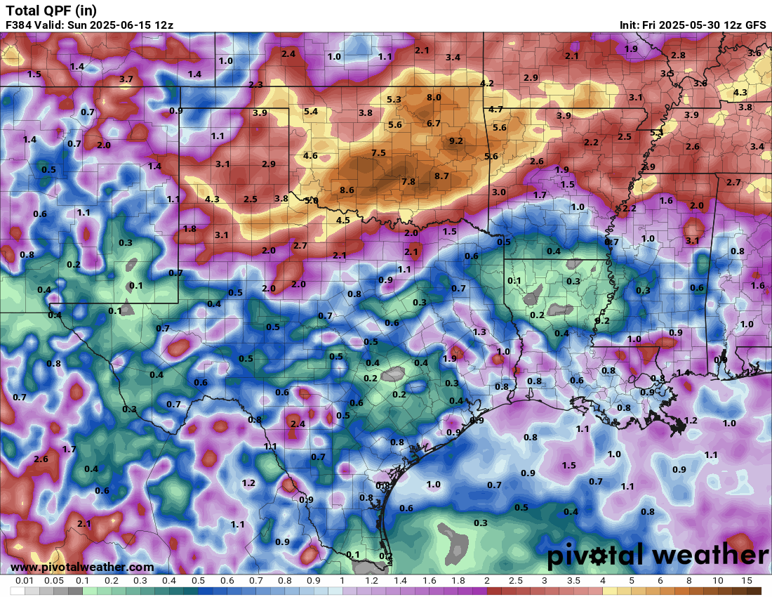Most of the rain is north of us on the Ensembles and models for the next two weeks. The seabreeze and popcorn variety are the main sources.
