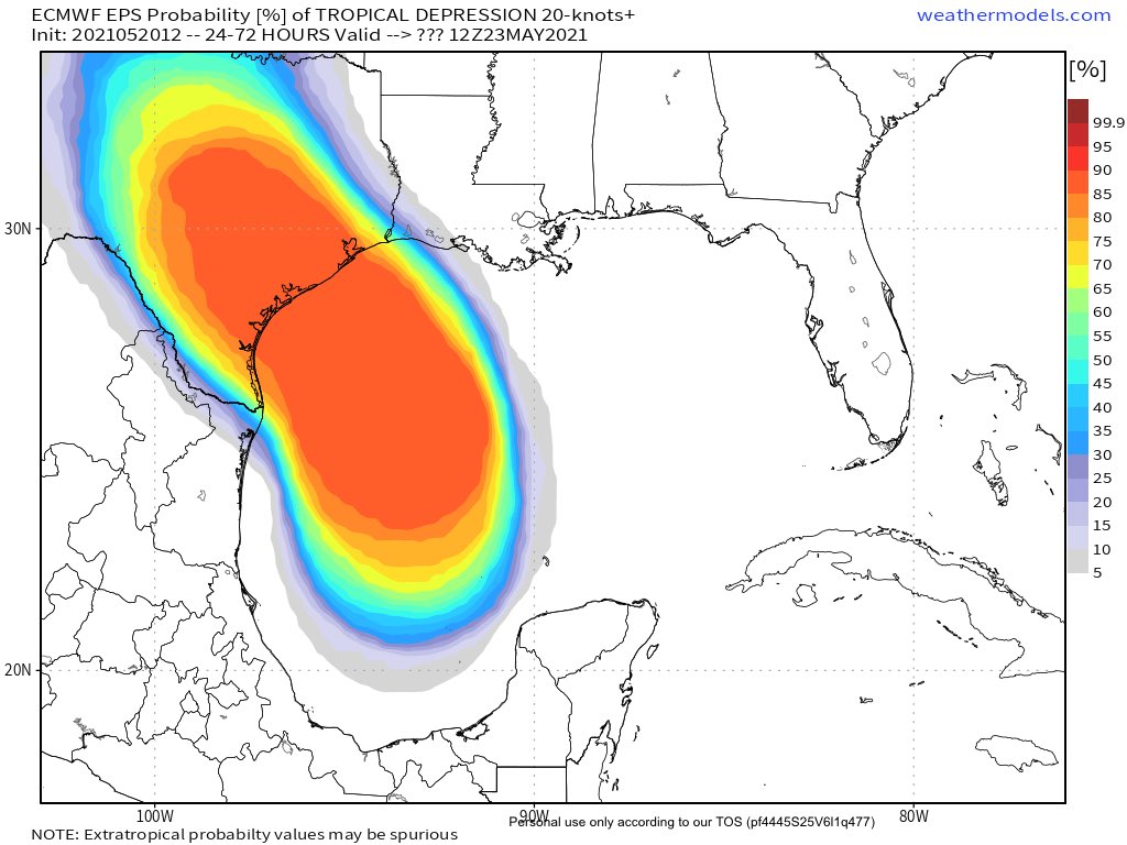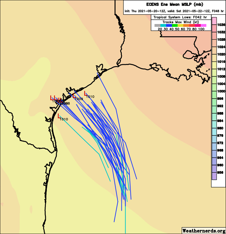 Well 2021 hurricane season is ready to get this party started. Thankfully not much rain across SE TX since yesterday with the action staying offshore. More model consistency on development in the NW GOM headed to the Middle TX Coast. he main concern would be more heavy rainfall should this occur. The GOM satellite looks interesting but nothing at the surface. We do not need more rainfall. 4.9” in the backyard the last 5 days is enough and many of us saw much higher totals. Yep just saw Blake's post on FB.