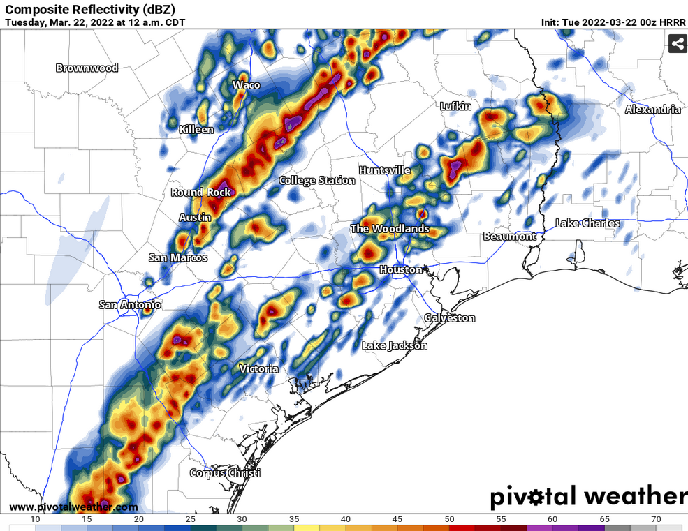 Everything avoids College Station. Heyooo.DoctorMu wrote: ↑Mon Mar 21, 2022 9:16 pmWeakened and literally lifted jumped over our location. Hook echo is now NE of me. TGStratton20 wrote: ↑Mon Mar 21, 2022 9:14 pm Ah I see, though I am hearing that the rotation is weakening
