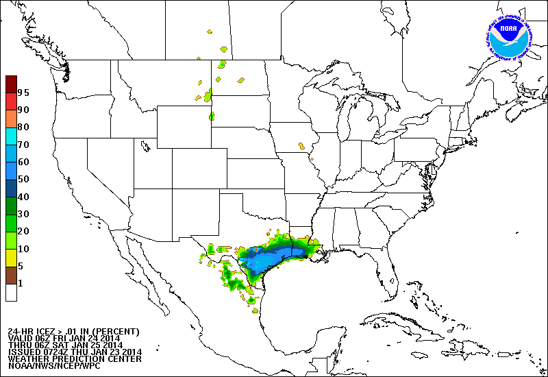 Other item to consider is the amount of sleet mixing in which tends to lessen accumulations, but forms a more solid and crusty layer of ice similar to what happened in N TX in early December 2013. More snow would greatly increase accumulations into the ½ to 1.5 inch range…but this looks unlikely at the moment and if it occurred would be mainly NW of a line from Columbus to Conroe. Think any snow will be very wet and will likely only add to the icing accumulation.