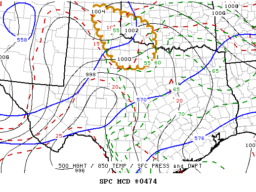 Winds gusting out of the E in Dallas/Ft Worth 35- 40 MPH behind the bow echo. That may persist for the next hour as the surface low to there W finally moves into Oklahoma. The main cold core upper low is located over the Texas Panhandle and is meandering very slowly E.