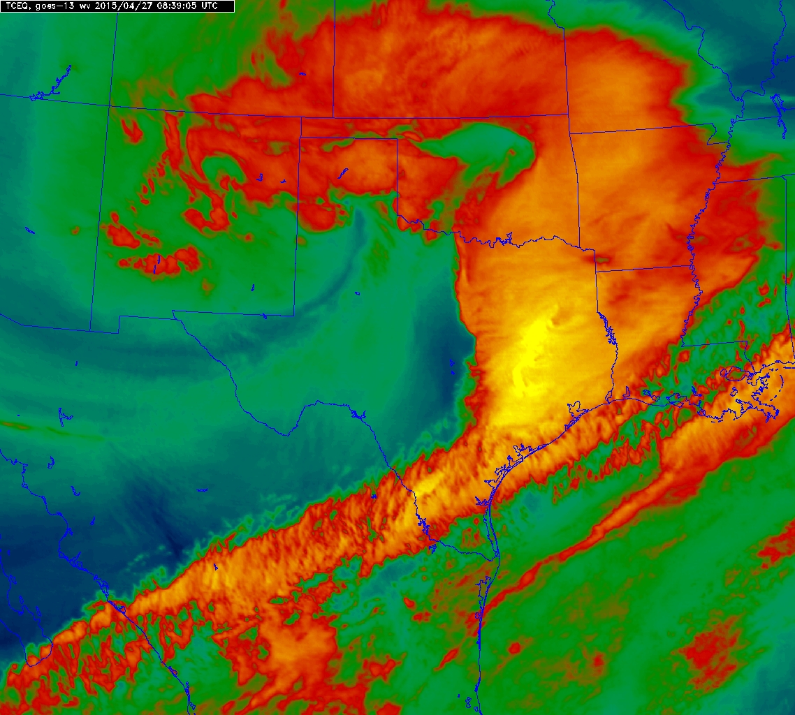 The actual cold front is back up across the Hill Country and may take all day before the front clears SE Texas. The current storms are associated with the outflow boundary of the overnight storms that developed way out to our North West. Still some concern that additional storms will fire later today during daytime heating.