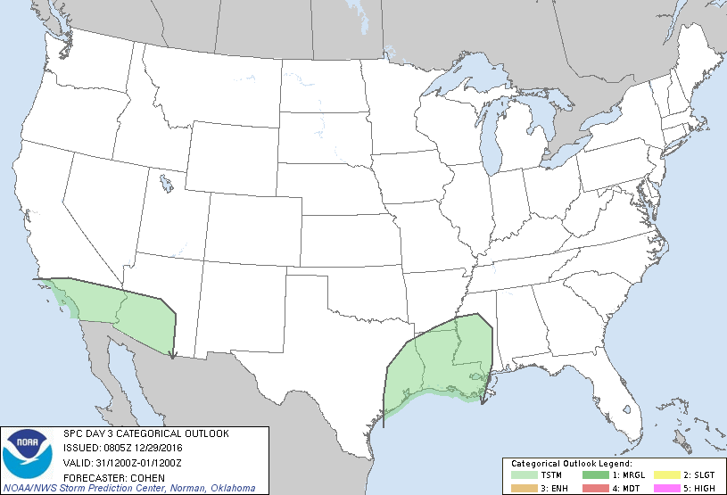 Except the rollercoaster pattern to continue as a warm front moves N Friday ahead of the Baja upper low that has been stationary begins to lift NE ahead of a deepening Western trough. Will need to monitor for the potential of isolated thunderstorms New Years Eve with the possibility of some heavy rainfall where the stronger storms develop on Saturday into early New Years Day.