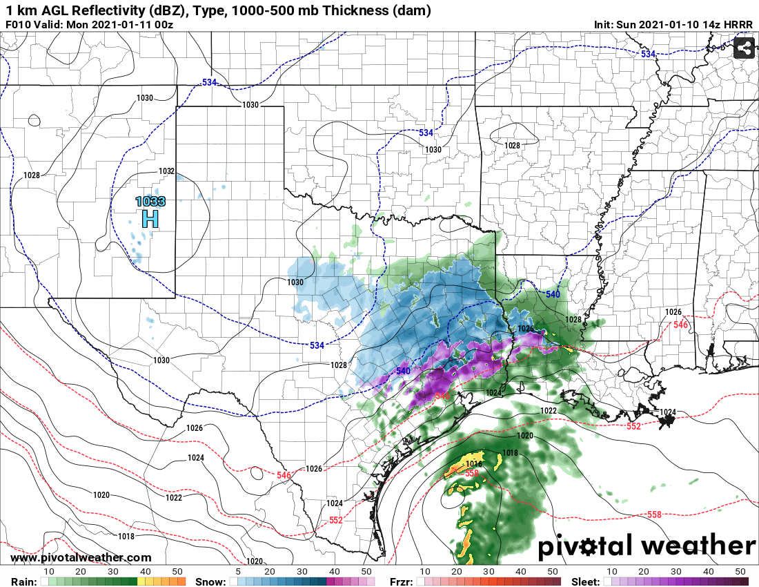 The HRRR has several hours of mix precip starting late afternoon along the I-10 corridor,including Metro Houston.