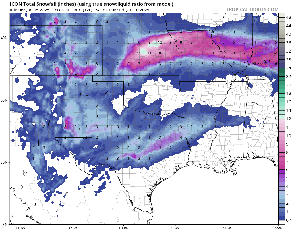 Perfect!snowman65 wrote: ↑Sun Jan 05, 2025 7:41 amtoo soon??redneckweather wrote: ↑Sun Jan 05, 2025 6:00 am Overnight model runs are pretty dull about snow down here later in the week. Maybe that will change a bit as the day goes on, who knows. I did notice the insane snow total amounts in the area on the latest GFS for around the 17th with another system. Probably a ghost run but dang!![]()