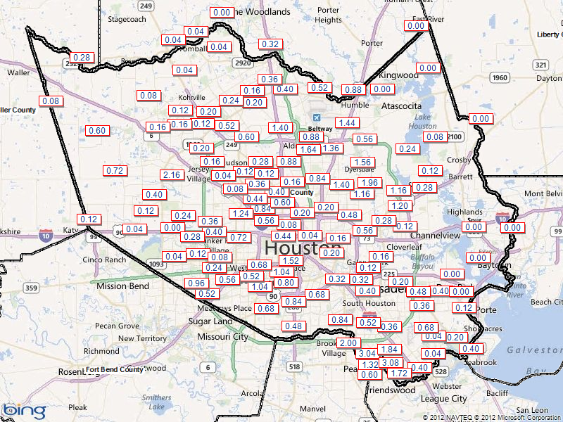 So far I've had almost 2 inches from the first wave that came through earlier in NW Harris County. The next wave that Jason just mentioned is sweeping in from my SE. There appears to be another wave near Galveston Island as well.