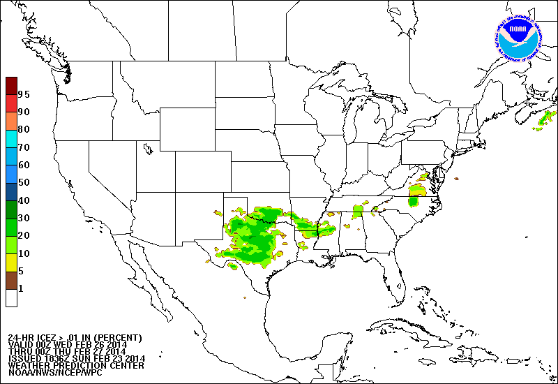 It appears this quick shot of colder air may have some teeth with it. The WPC Winter Weather Outlook Desk has increased the probabilities of freezing rain and sleet across portions of the Edwards Plateau and Northern Hill Country into the San Angelo area and chance shifts E into Louisiana and Mississippi Thursday night as the colder air settles further S along the Northern Gulf Coast.