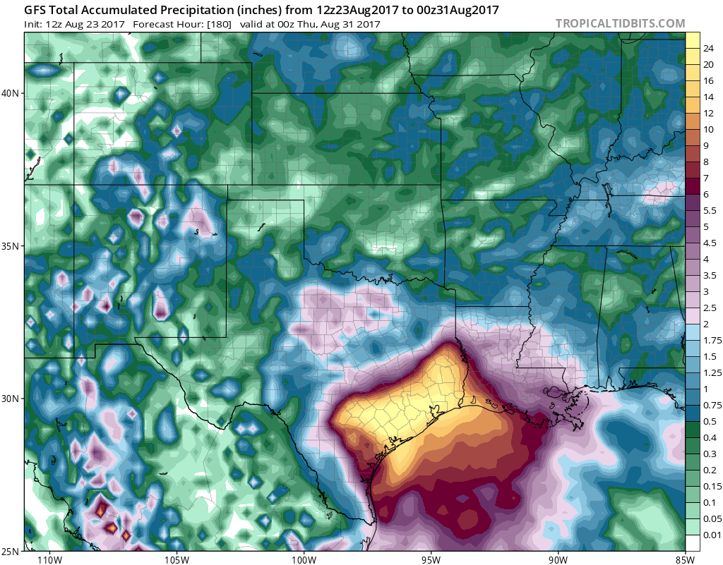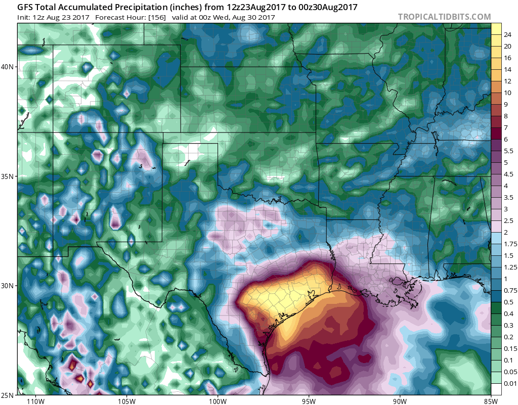 I meant to say "so far".sau27 wrote:Looks like the 12z GFS is wanting to strengthen the High out west and keep Harvey buried more south and west of here than previous runs. Curious to see what the ensemble and the Euro have to say.
