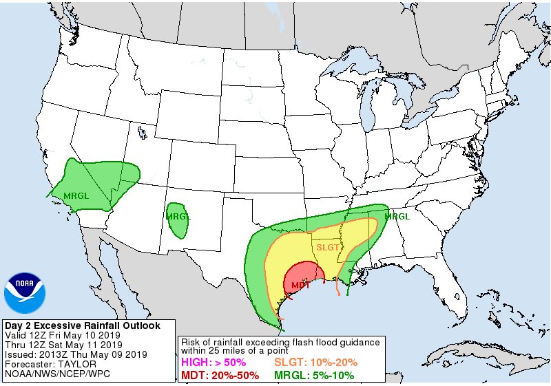That's impressive coverage. Wow.srainhoutx wrote: ↑Thu May 09, 2019 4:06 pm WPC Updated Excessive Rainfall Outlook from now until tomorrow morning...