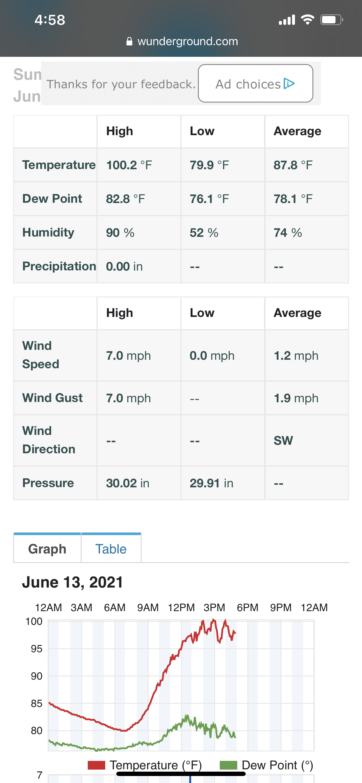 Feels like the end of July out there instead of mid June. 96° with a feels like of 108°. Just flat out unbearable.