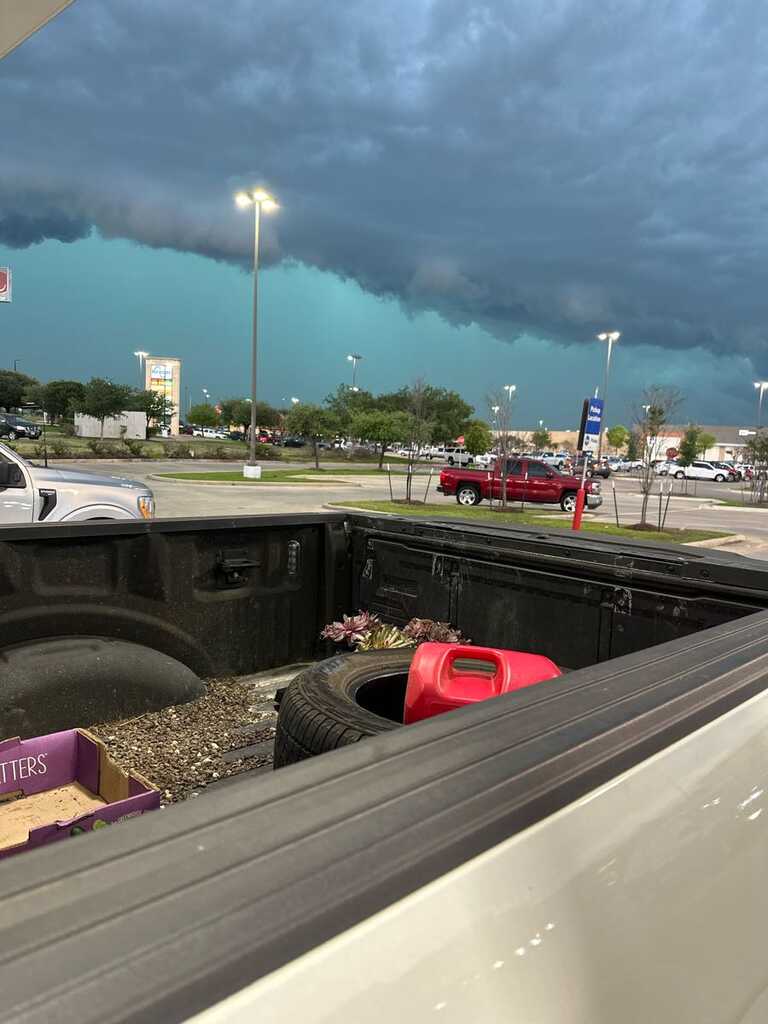 Here's a photo from a CLL resident trying to making back from Bryan. Nice wall droppage. It looks like a few vortices are trying to form. This was about the time I was crossing Texas Ave and notice the massive inflow about 40 mph steady like moving through a river of moving air.
