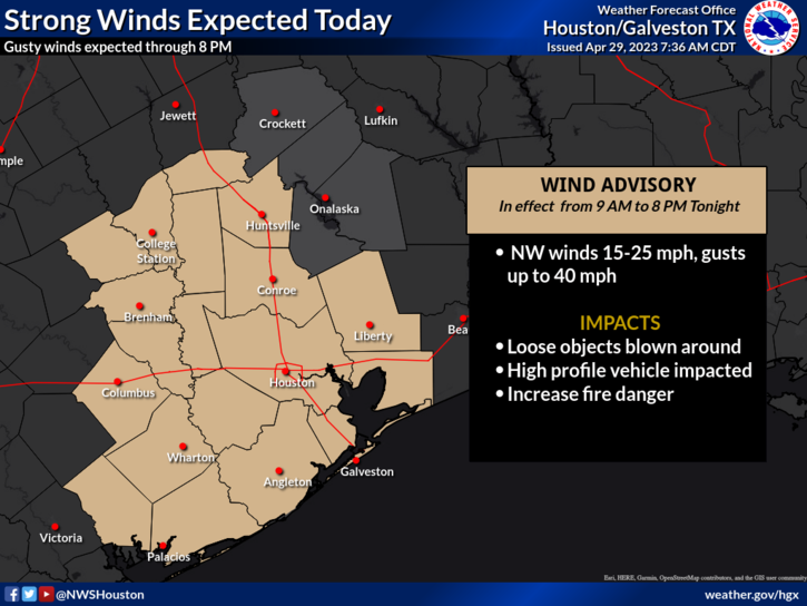 .42” of rain and gusts to 40MPH in W League City.