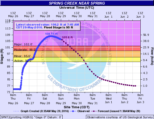 Major flooding continues on Spring Creek and San Jacinto River Basin.
